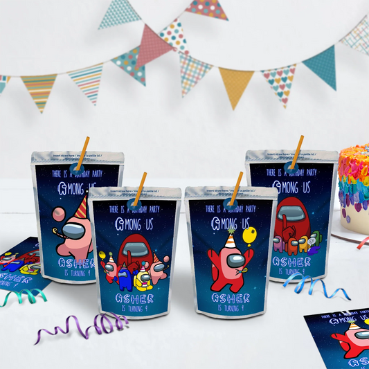 • Among Us Personalized Juice Pouch Label for Birthday Party drinks
