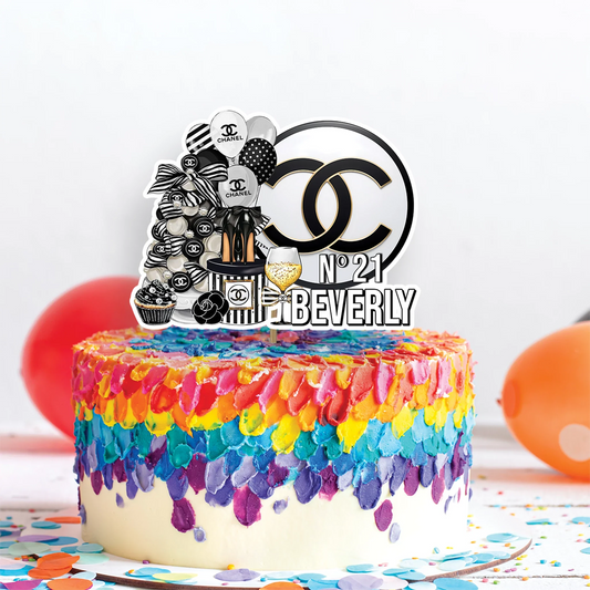 Chanel Inspired Personalized Cake Toppers Elegant Design
