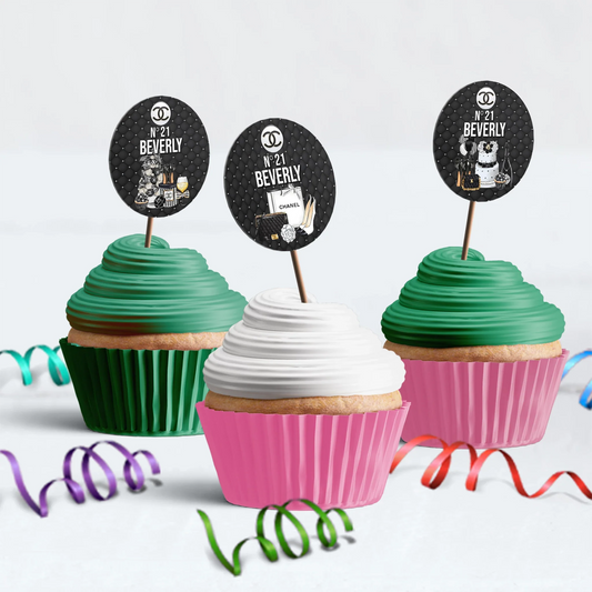 Chanel Inspired Personalized Cupcake Toppers Chic Style