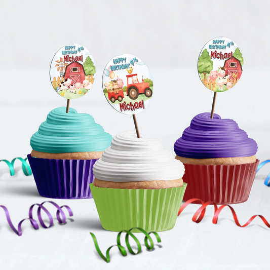 Farm Animals Theme Personalized Cupcake Toppers Printable