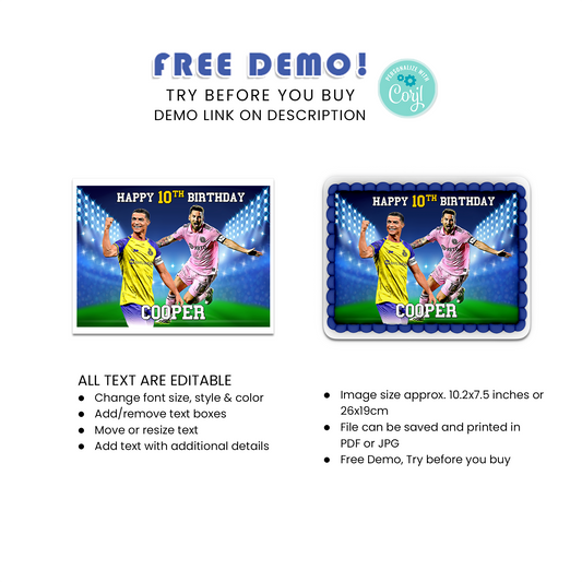 Rectangle Messi & Ronaldo Personalized Cake Images - Make Your Party Stand Out