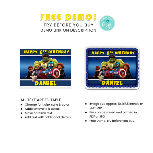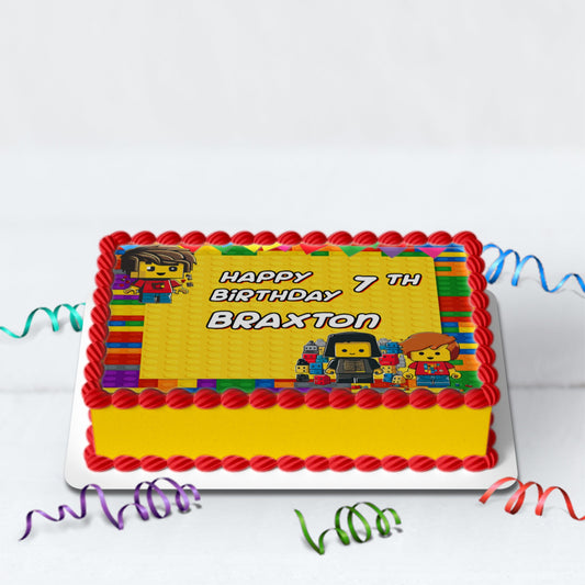 Rectangle Personalized Cake Images with Lego Design - Make Your Party Memorable
