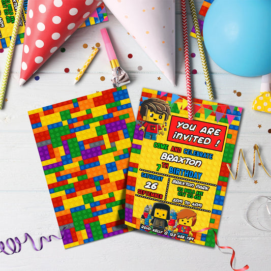 Birthday Card Invitations with Lego Personalization - Invite Your Guests in Style