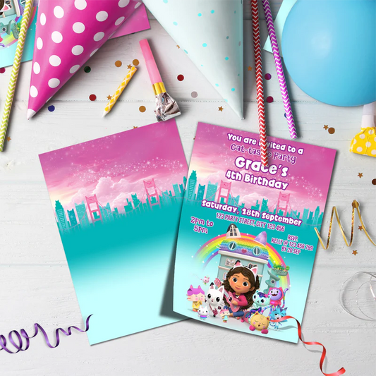 Gabbys Dollhouse Birthday Card Invitations Custom Party Template