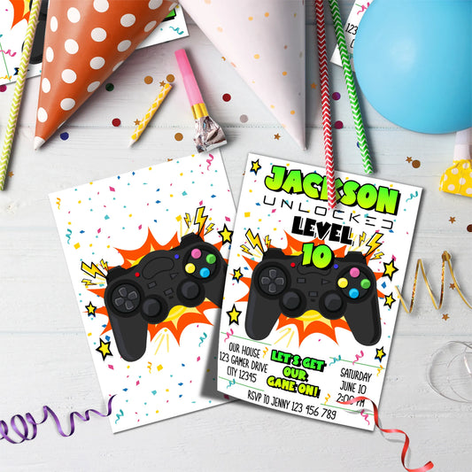 Gaming Controller Playstation Personalized Birthday Card Invitations - Custom Birthday Invitations for Playstation Enthusiasts