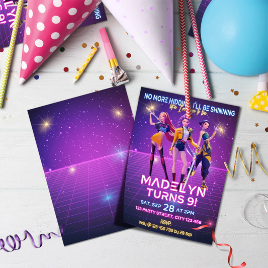 Huntrix Kpop Demon Hunters birthday card invitations custom print