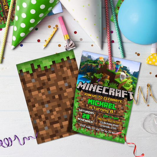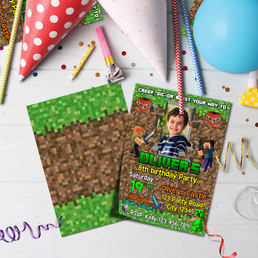 Minecraft Personalized Birthday Card Invitations : Start Your Adventure in Style