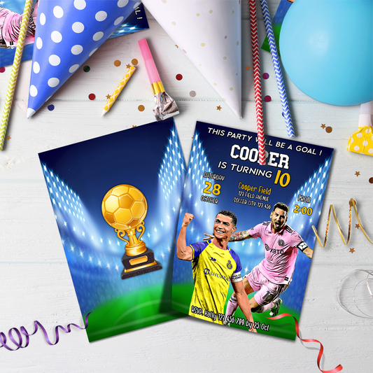 Messi & Ronaldo Personalized Birthday Card Invitations - Kickstart Your Celebrations in Style