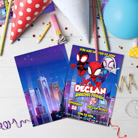 Spidey and His Amazing Friends Personalized Birthday Card Invitations