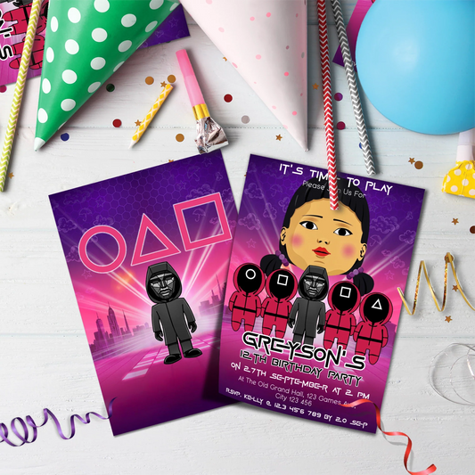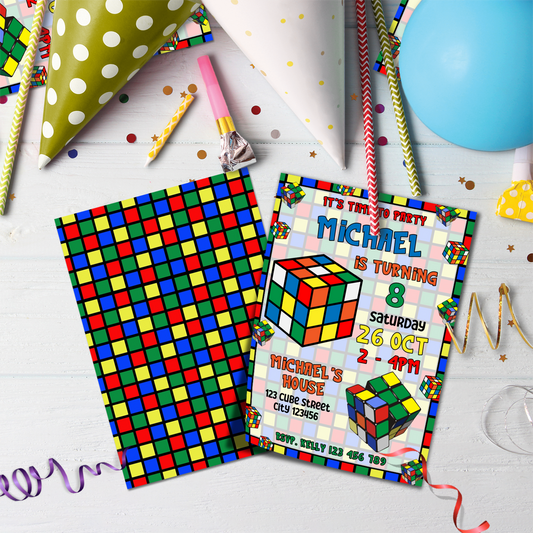 Pixelated Personalized Birthday Card Invitations for Themed parties