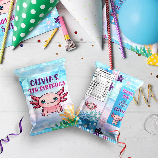 Axolotl Chips Bag Label Personalized Party Snack Wrapper