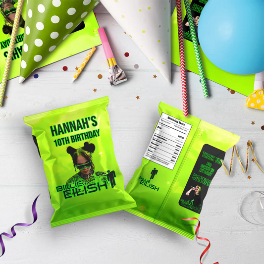Billie Eilish Chips Bag Label - Custom Chips Bag Labels for Billie Eilish Themed Parties