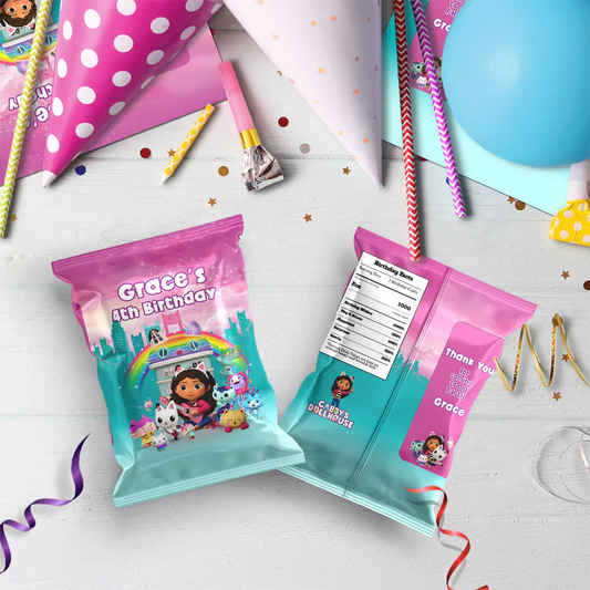 Gabbys Dollhouse Chips Bag Label Custom Party Snack Decoration