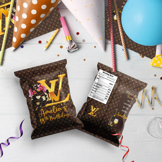 Louis Vuitton Inspired Chips Bag Label Personalized Party Snack Wrap