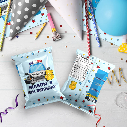 Kids Police Chips Bag Label Custom Birthday Party Snack Wrapper