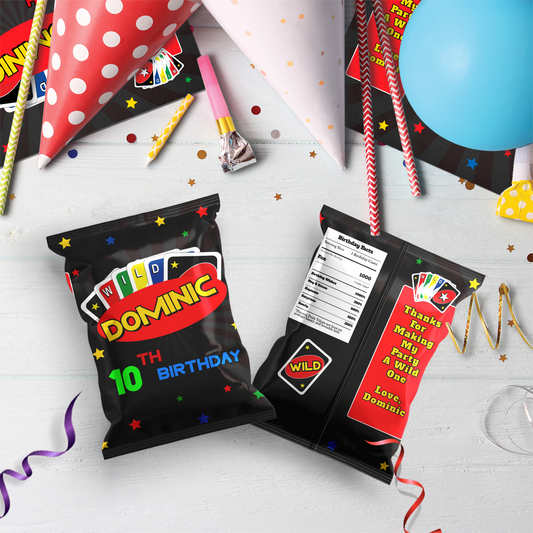 Themed Uno Chips Bag Labels for Crunchy Party Snacks