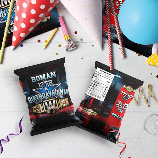 Birthday Mania Chips Bag Label - Add a Wrestling Touch to Your Snacks