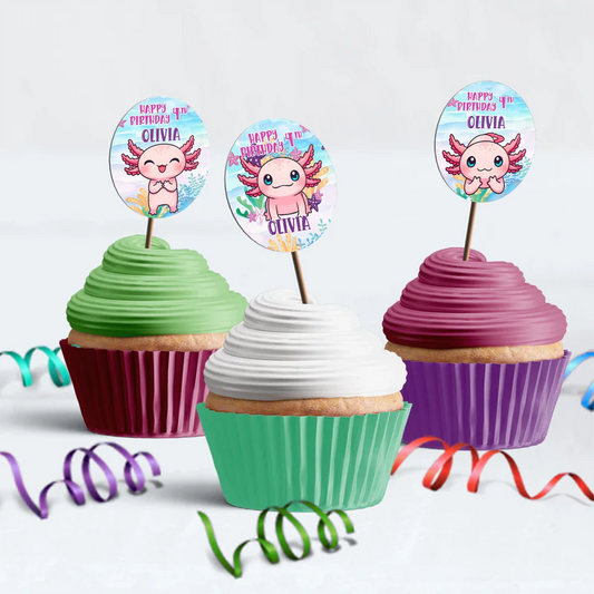 Axolotl Cupcake Toppers Personalized Birthday Party Set