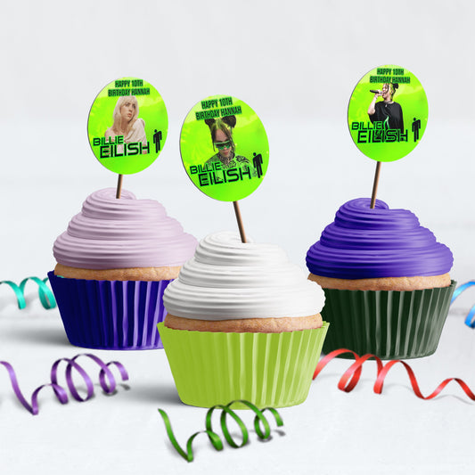 Billie Eilish Personalized Cupcakes Toppers - Custom Cupcake Decorations for Billie Eilish Themed Parties