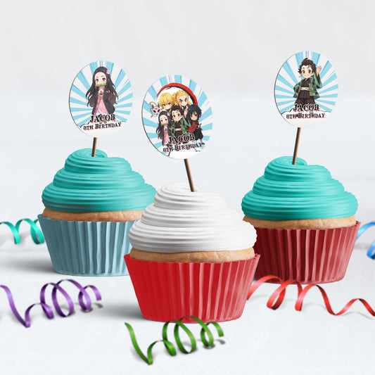 Demon Slayer Personalized Cupcakes Toppers : Demon Slayer Themed Personalized Cupcake Toppers for Your Party