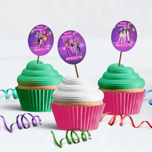 Huntrix Kpop Demon Hunters cupcake toppers birthday party set