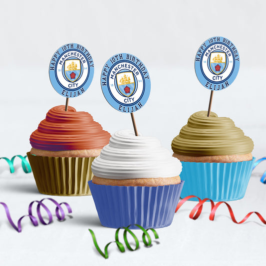Manchester City FC Personalized Cupcakes Toppers - A Sweet Addition to Your Party