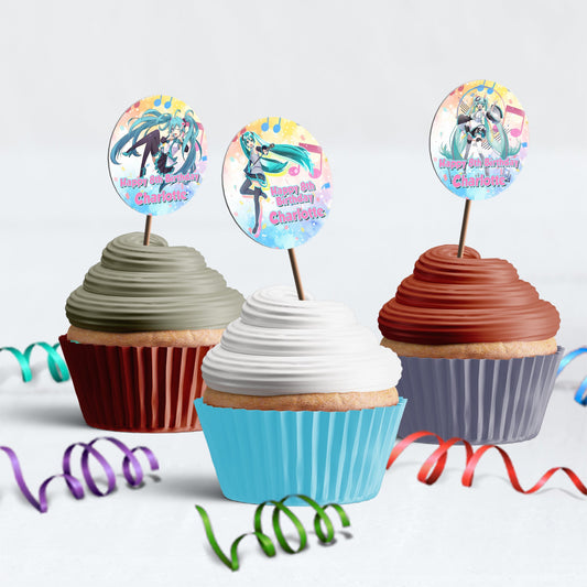Hatsune Miku Personalized Cupcakes Toppers - Custom Cupcake Decorations for Parties