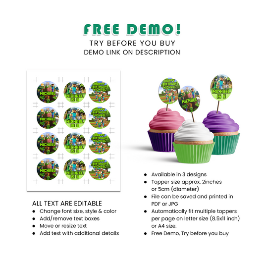 Minecraft Personalized Cupcakes Toppers : The Perfect Treat for Gamers