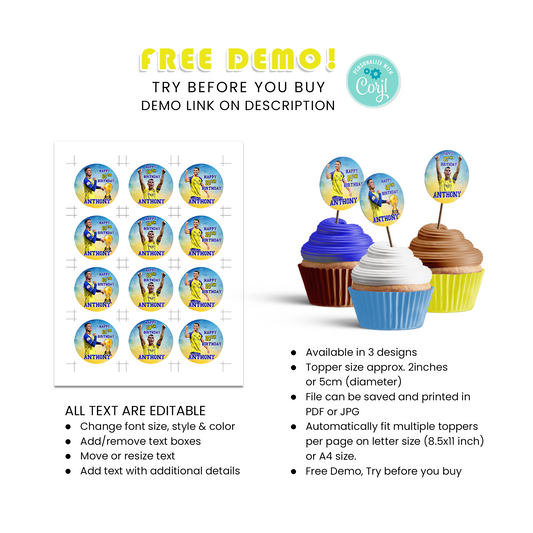 Cristiano Ronaldo Personalized Cupcakes Toppers - A Sweet Addition to Your Party