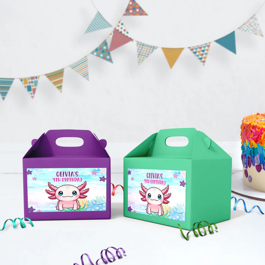 Axolotl Treat Box Label Custom Birthday Party Sticker