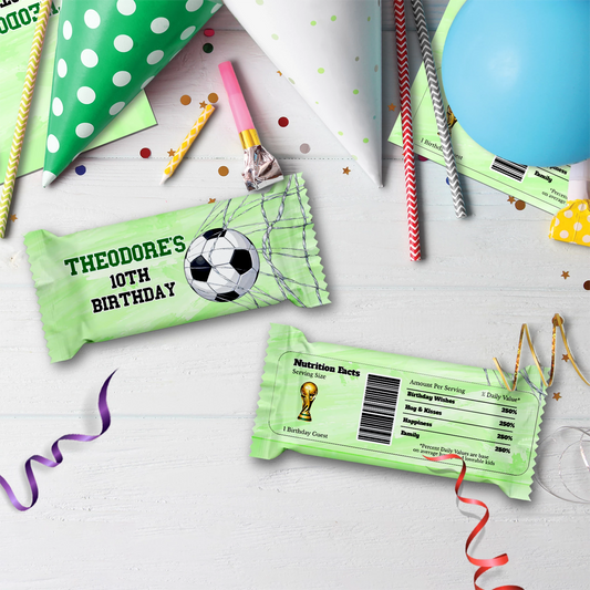 Soccer Rice Krispies treats and candy bar labels party favor wraps