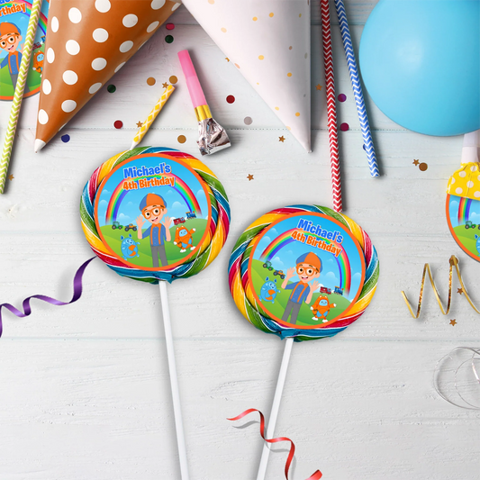 Blippi lollipop labels for kids birthday party favors