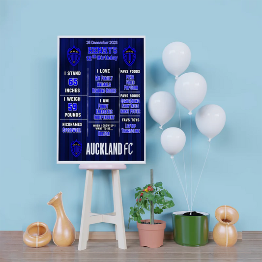 Auckland FC Milestone Poster Custom Birthday Sign for Football Fans