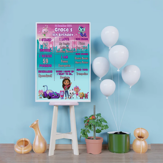 Gabbys Dollhouse Milestone Poster Personalized Birthday Keepsake