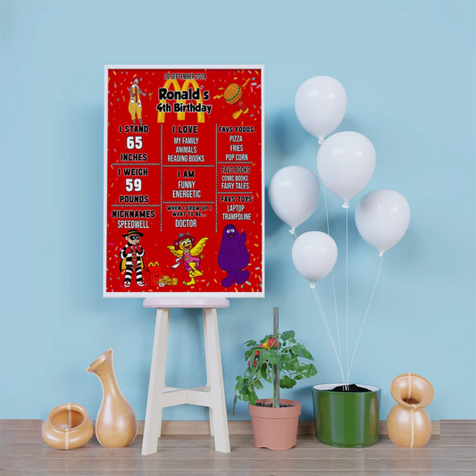 McDonalds Milestone Poster Personalized Birthday Stats Sign for Kids