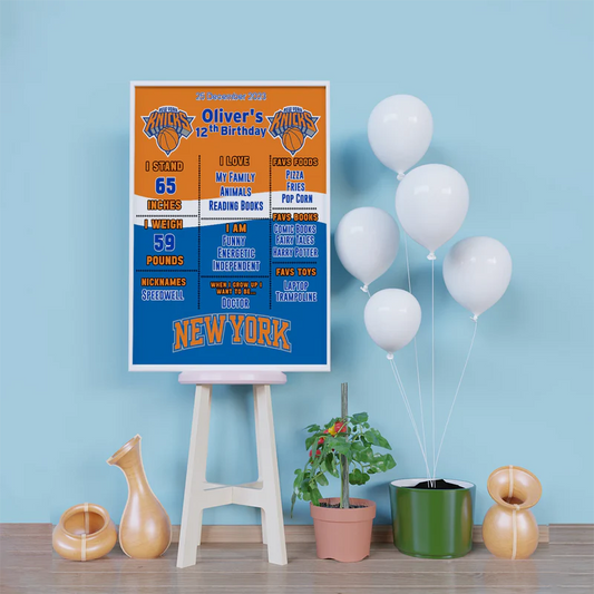 New York Knicks Milestone Poster Custom Birthday Stats Decor Sign