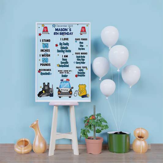 Kids Police Milestone Poster Personalized Birthday Party Board