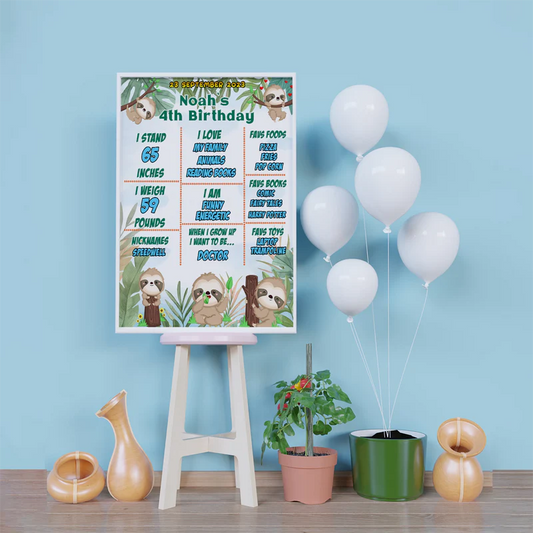 Sloth Milestone Poster Custom Birthday Keepsake Sign