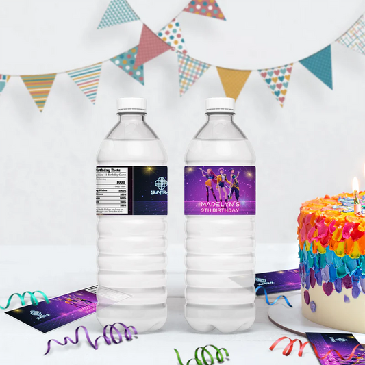 Huntrix Kpop Demon Hunters water bottle label birthday theme