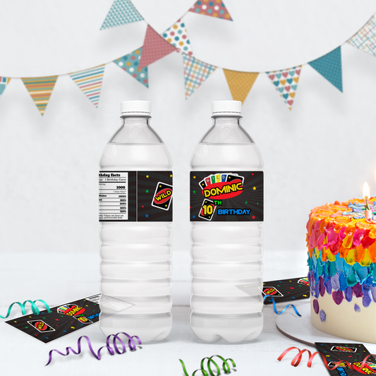 Custom Uno Water Bottle Labels for Refreshing Party Favors