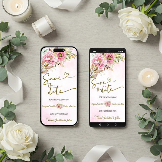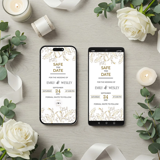 Gold Wild Flower Save the Date Mobile Version Digital Wedding Announcement for Phones & Devices
