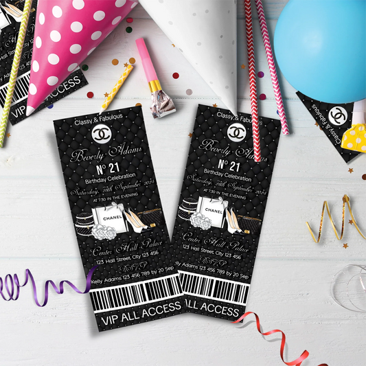 Chanel Inspired Personalized Birthday Ticket Invitations