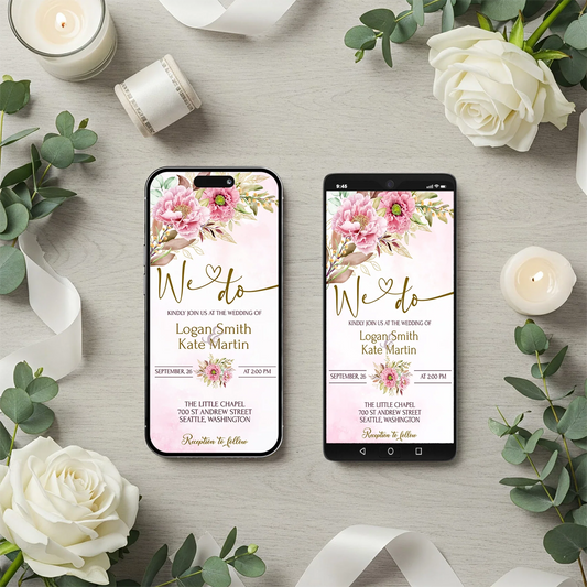 Pink Peony Personalized Wedding Invitation Mobile Version