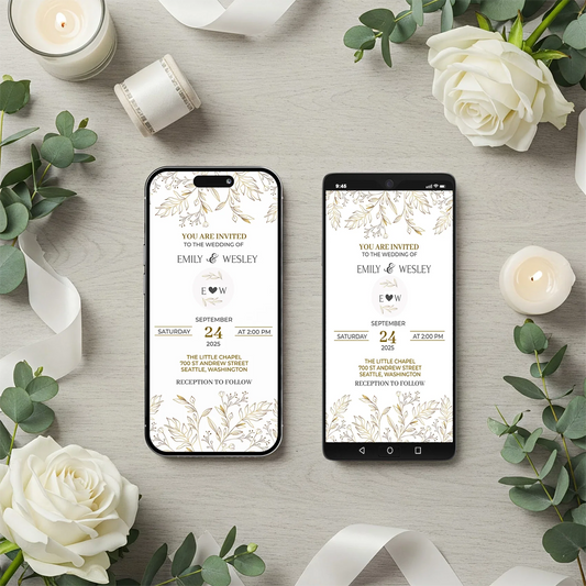 Gold Wild Flower Wedding Invitation Mobile Version Digital Phone Invitation for Weddings & Events