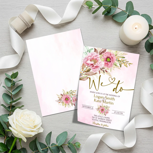 Pink Peony Personalized DIY Wedding Invitations