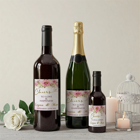 Gold Wild Flower Wedding Wine Label Elegant Floral Custom Wine Sticker for Wedding Reception