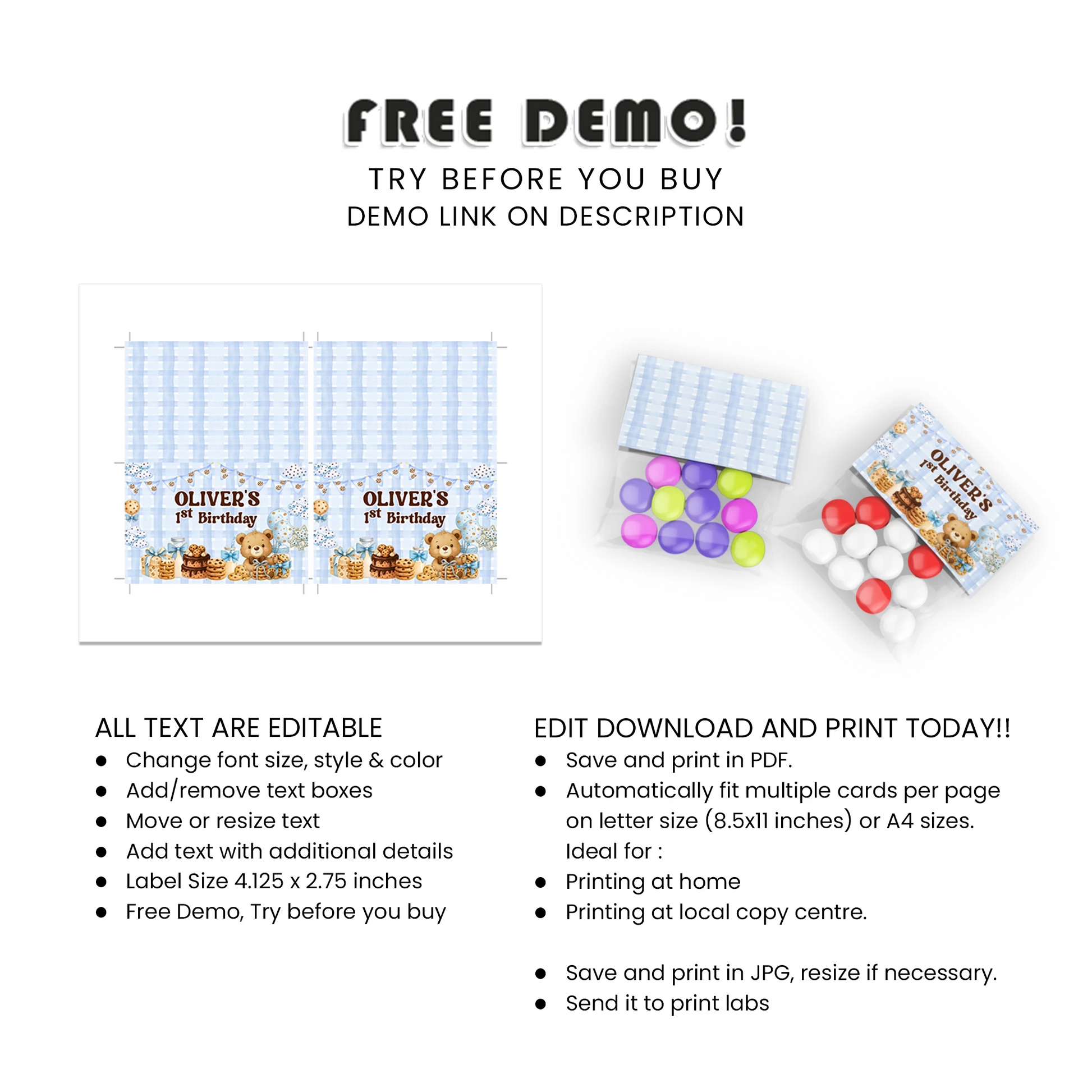 This Treat Bag Label is fully editable and available for immediate download. Our user-friendly online editor allows for easy customization without any software or font downloads.