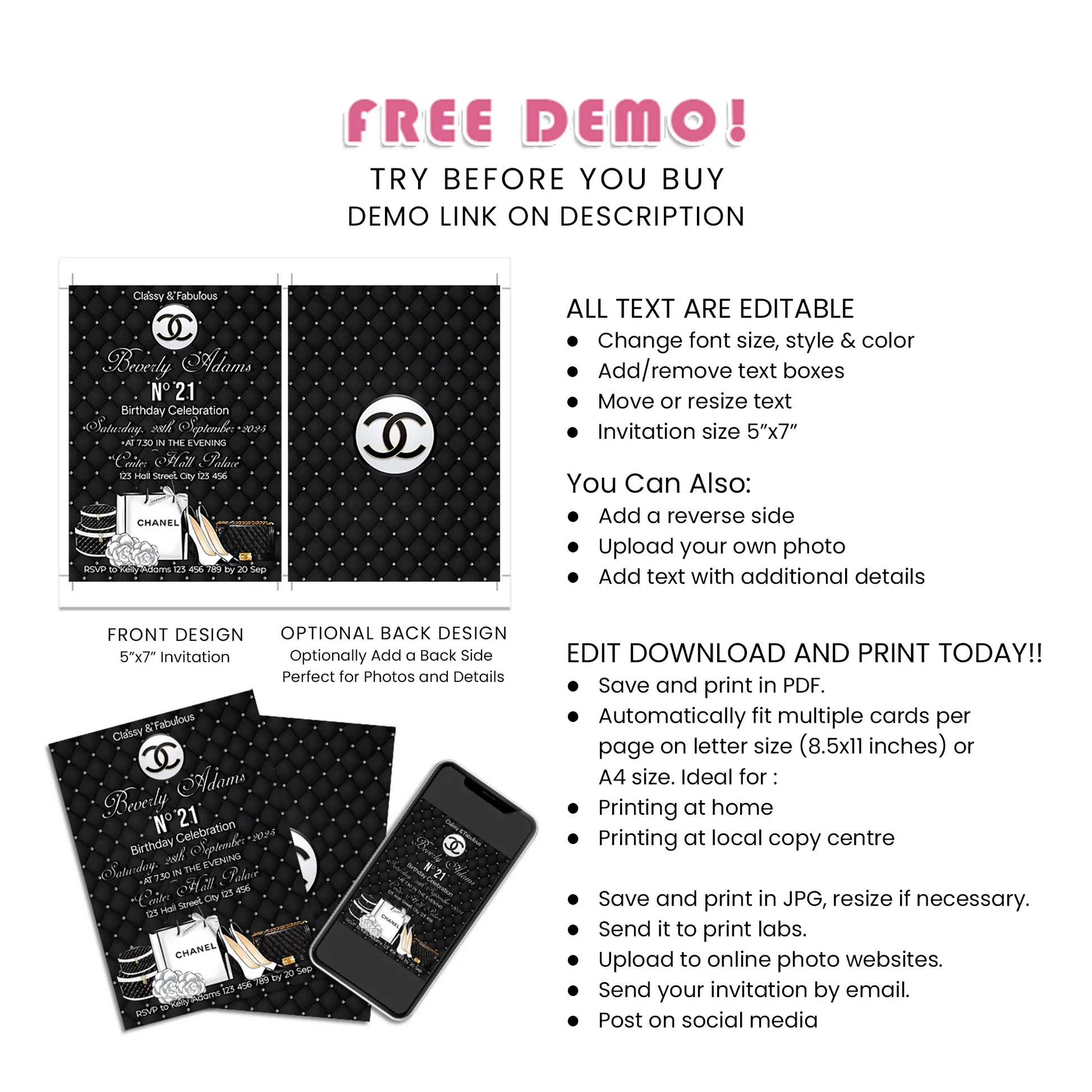 Buy Chanel Inspired Personalized Birthday Card Invitations
