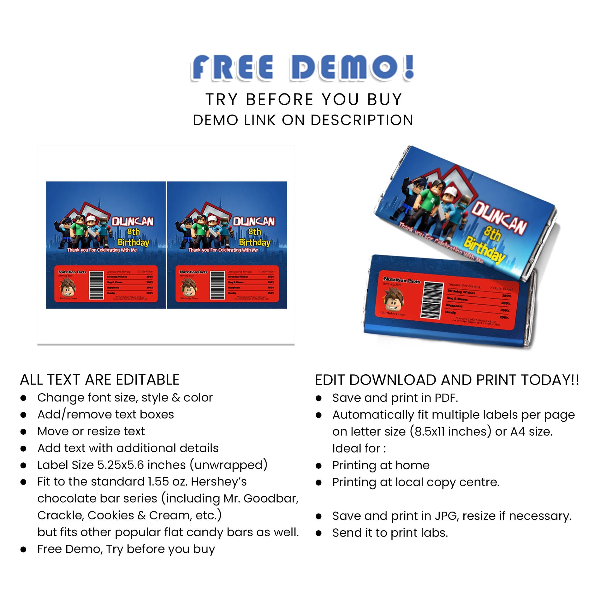 Make your chocolates stand out with our Roblox Chocolate Labels. These labels are a fun and unique way to personalize your chocolates, and they’re perfect for any Roblox-themed party.