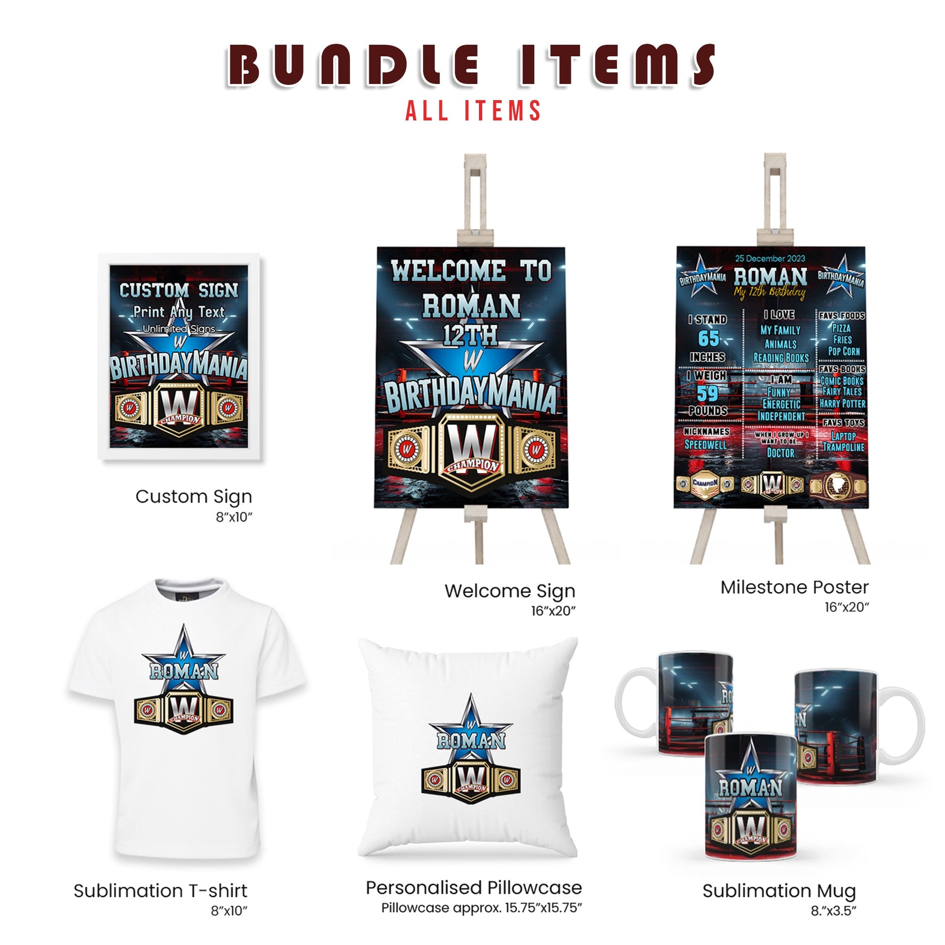Create the ultimate WWE-themed party with our customizable WrestleMania digital template party pack. Includes exclusive templates for invites, decorations, and more, all designed for wrestling fans. Perfect for birthday parties or any WWE event. Personalize your party with fun and unique designs!
